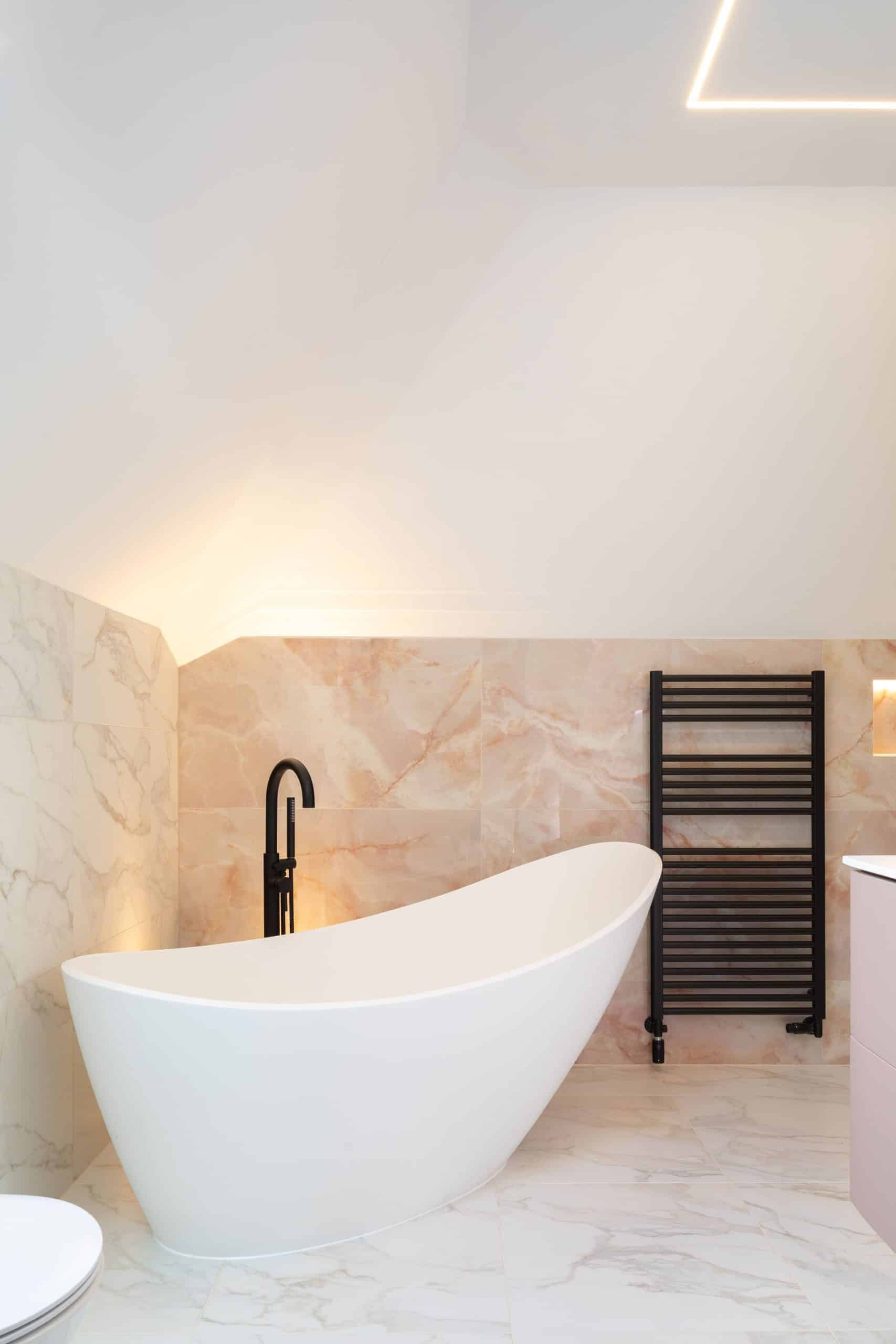 Upstairs, the layout was completely reconfigured to create four generous bedrooms, each with its own ensuite, giving every family member a self-contained space. The previous box room was removed to form a double-height hallway and striking new stair core, instantly changing the feel of the entire home. The new loft extension crowns the project with a serene main bedroom suite complete with dressing room, ensuite, and a terrace overlooking the park. Externally, crisp white render, contemporary zinc roofing, and carefully matched brickwork blend modern design with the original character of the street. It’s a home that now feels coherent, spacious, and filled with light — a complete reimagining of a once-dated property into a contemporary family space built to evolve well into the future.